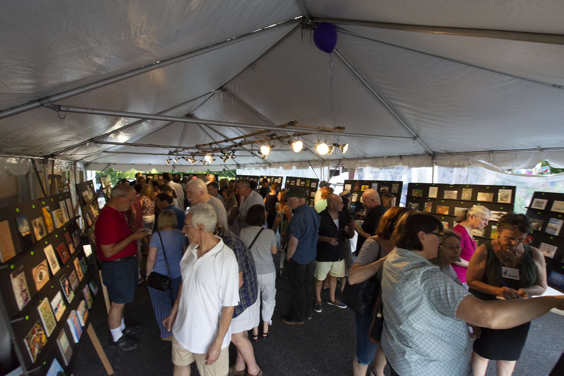 Formerly held in a tent, this exhibit and sale now opens online, and closes with an in-person pick-up and viewing party.